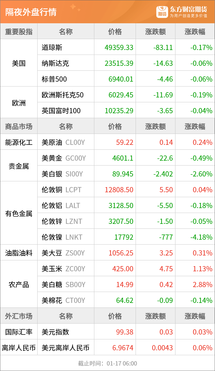 原油:当地时间1月16日,美国正加快扩大雪佛龙在委内瑞拉的石油生产许可授权。美国能源部长克里斯·赖特当天表示,美方正在“尽可能快地”完成相关授权。(央视新闻)
