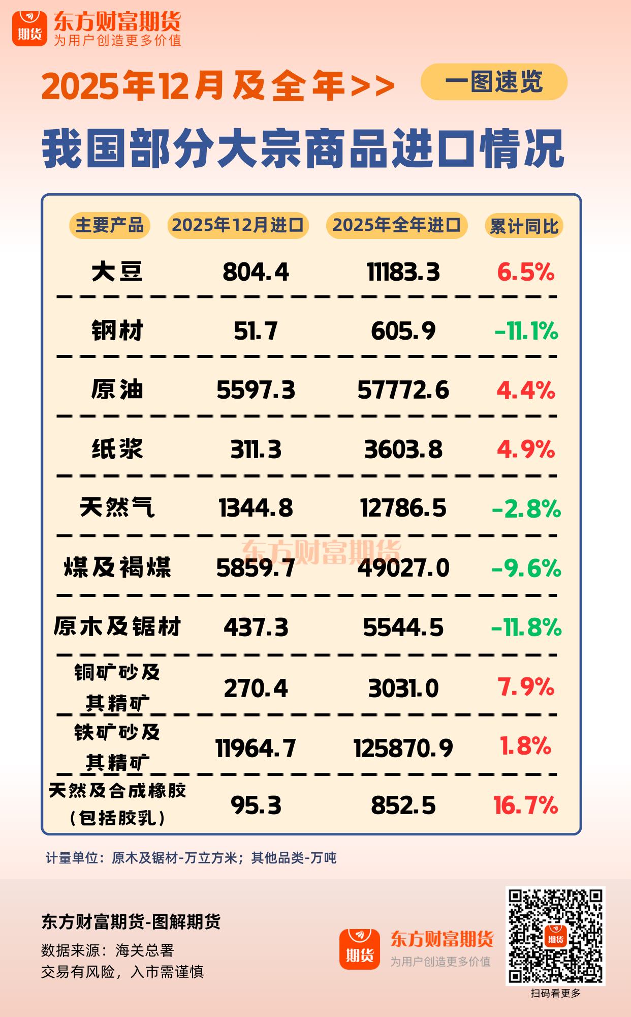 一图速览2025年12月及全年,我国部分大宗商品进口都有哪些变动?