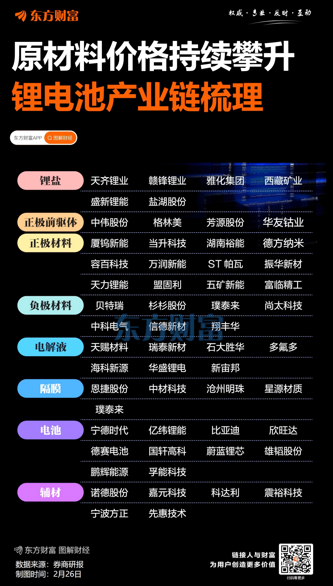 2月25日,锂电池指数震荡走高,杉杉股份、五矿新能、盛新锂能等个股涨幅居前。在行业层面,2025年四季度以来,锂电原材料价格持续攀升,并已沿产业链向下传导。