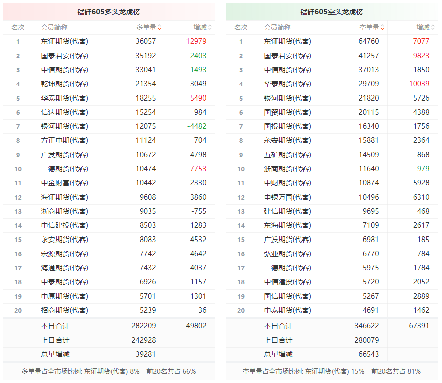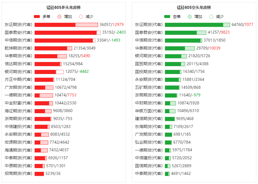 总体而言,锰硅605合约今日增仓上行,多空持仓排名前20席中,多空双方均呈进场态势,多头进场意愿弱于空头。